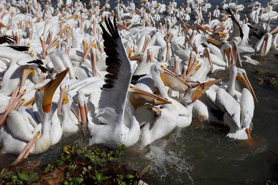 PETATÁN, (EFE).- Durante el invierno y parte de la primavera, el poblado de Petatán alberga a cientos de pelícanos borregones, una especie que se ha vuelto parte del paisaje y que contribuye a la economía de este sitio a orillas del lago de Chapala, el más grande de México.