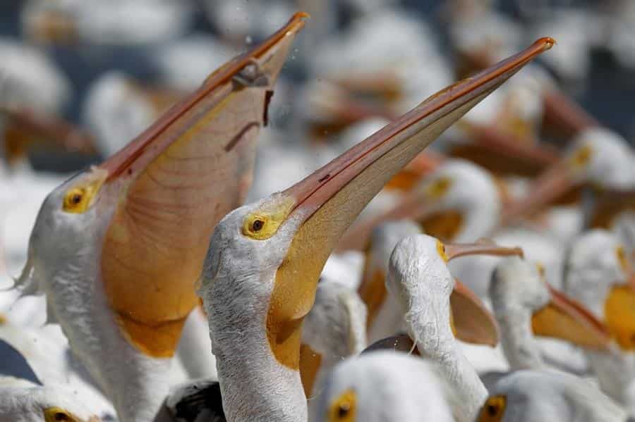 El pelícano borregón es considerada una de las aves más grandes de Norteamérica. Su envergadura puede medir entre metro y medio y hasta tres metros de largo.