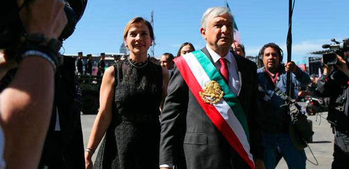 "Aquí va nuestro presidente de México", escribió hoy Beatriz Gutiérrez en su cuenta de Facebook con una foto de su esposo en el interior del vehículo que les llevó desde su domicilio al Palacio Legislativo para la ceremonia de investidura de López Obrador como presidente.