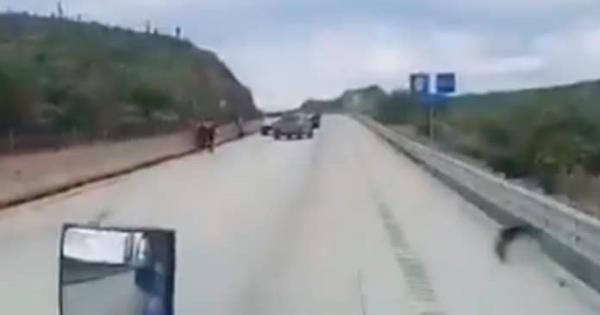 En un video que circula en redes sociales se puede observar el momento en que los delincuentes se alejan con la camioneta mientras la familia se queda a un costado de la autopista y son auxiliados por el conductor de un tráiler.