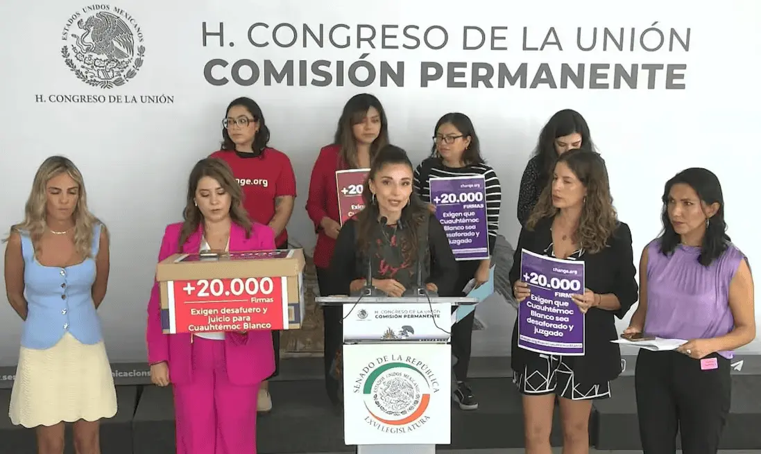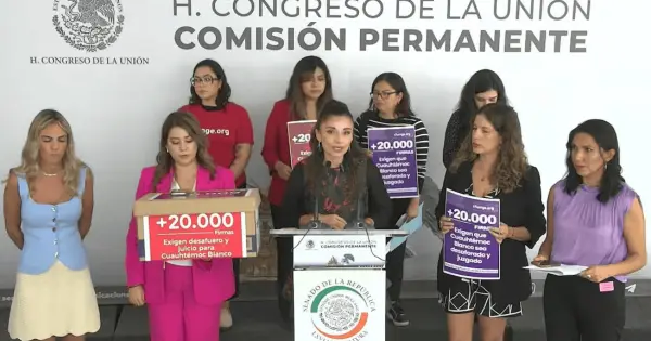 La diputada federal Laura Ballesteros y mujeres activistas de la sociedad civil entregaron a la Mesa Directiva de la Comisión Permanente, 23 mil firmas ciudadanas recabadas en change.org que exigen el desafuero de Cuauhtémoc Blanco Bravo, legislador federal de Morena ante la presunta violación a su media hermana, Nidia X.