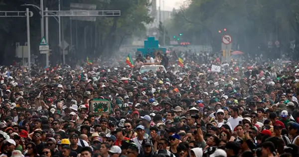 Ciudad de México.- Como cada 20 de abril, cientos de personas tomaron las avenidas principales de la Ciudad de México para conmemorar el Día Internacional de la Marihuana, fumar libremente y defender su consumo recreativo.