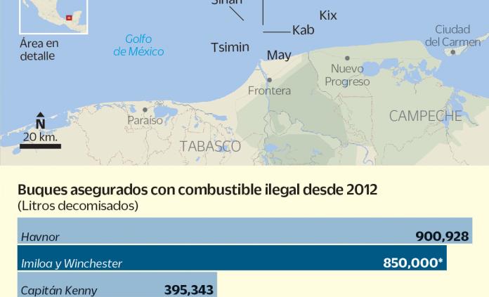 Otra modalidad es el trasiego de combustible entre buques en altamar, lo cual está prohibido, ya que este proceso debe realizarse siempre en el muelle, señaló el secretario de Marina, José Rafael Ojeda, al explicar el miércoles pasado el caso de los buques “Winchester” e “Imiloa” asegurados en el puerto Dos Bocas, Tabasco, con 800 mil litros de hidrocarburo.