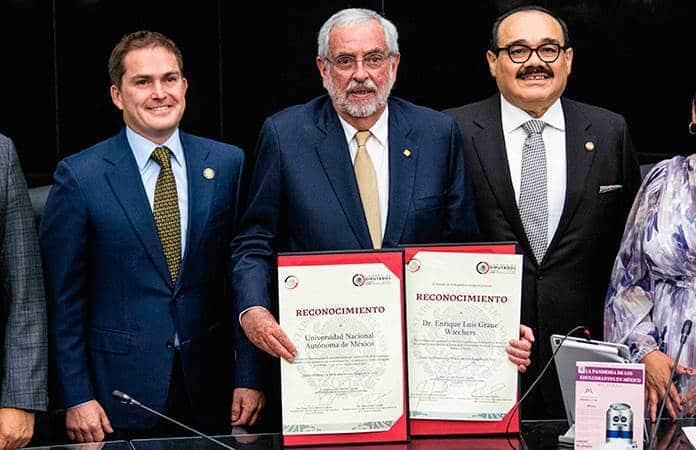 Ciudad de México.- A tres meses de que concluya su gestión de ocho años, el Congreso de la Unión entregó un reconocimiento al rector de la Universidad Nacional Autónoma de México (UNAM), Enrique Graue Wiechers, por su trayectoria y su permanente defensa de la autonomía universitaria y de la universidad pública.