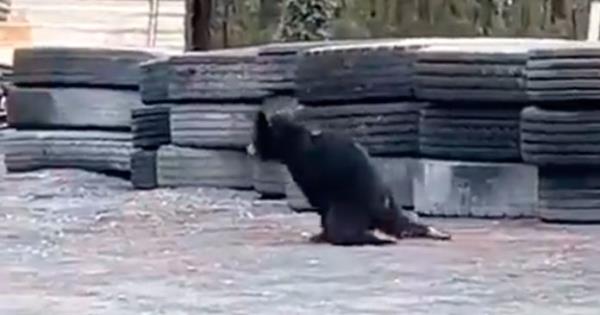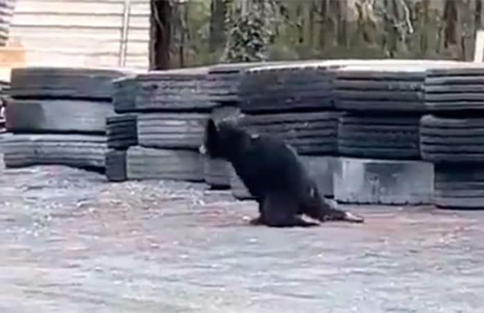 En dicho video se puede observar al pequeño animal arrastrándose mientras se impulsa con sus patas delanteras para poder llegar con su camada de osos negros.