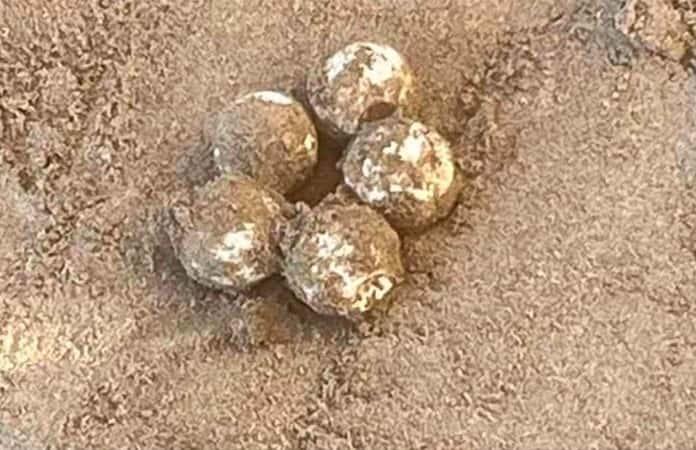 En esta zona de Guasave, los investigadores encargados de la protección de esta especie marina, se presentaron para recibir los ciento doce huevos que fueron rescatados por ambientalistas y elementos de la Protección Civil Municipal.