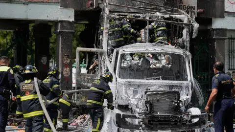 Poco después, algunos de los jóvenes manifestantes con la cara cubierta echaron un camión de reversa contra una de las entradas del campo militar y cuando el vehículo quedó encajado lanzaron cohetes hasta que lo incendiaron. Las autoridades no reportaron ningún herido.