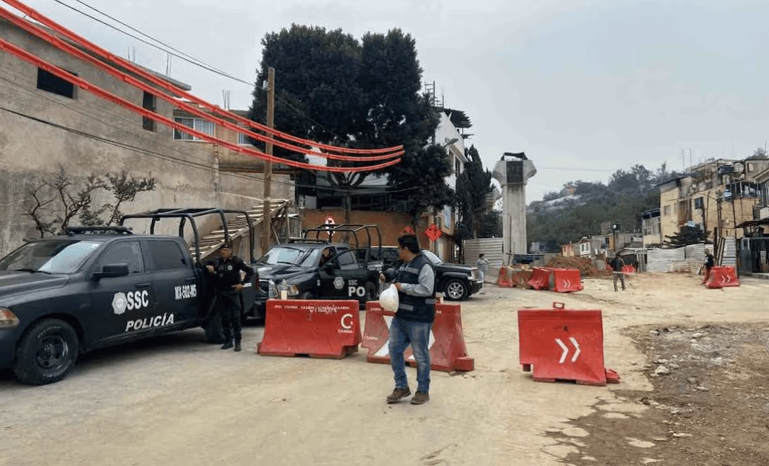 La zona permanece custodiada por elementos antidisturbios de la Policía metropolitana quienes mantienen un perímetro alrededor de las obras, mientras que los quejosos mantienen un plantón con sillas de plástico en los accesos principales de la obra.