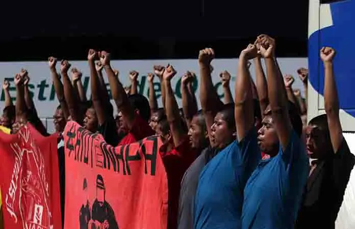 Chilpancingo, Gro.- Estudiantes exigieron al Gobierno federal que cumplan las promesas que ha hecho a los padres de los 43 desaparecidos de Ayotzinapa, durante la última protesta de 2025 en la ciudad de Iguala, al cumplirse 11 años 3 meses de la desaparición de los normalistas.