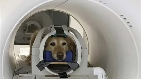 ? Los perritos, cuyo cerebro será escaneado, entrenan intensamente para permanecer inmóviles en el FMRI ante estímulos visuales u olfatorios detectando las áreas cerebrales activadas y sus emociones.