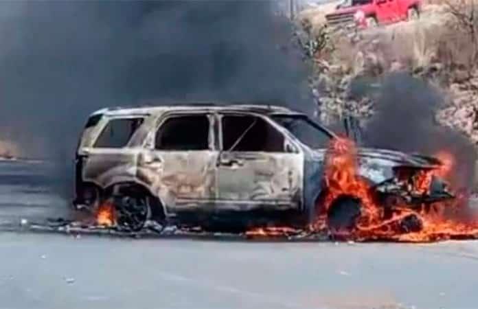 En diversos videos, se puede apreciar que varios vehículos fueron incendiados y colocados en medio de las carreteras en ese municipio de Fresnillo.