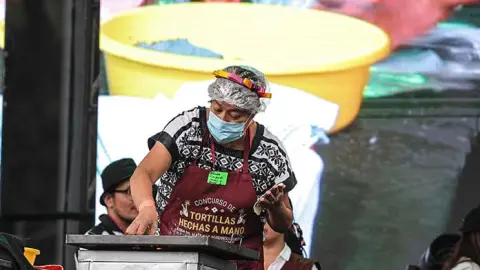 Ciudad de México.- Norma Cerqueda, mujer de origen mazateca se colocó como la mejor maestra tortillera de la Ciudad de México, al ganar el concurso de tortillas hechas a mano, que se realizó como parte de las actividades de la Feria del Maíz y la Agrobiodiversidad, en la explanada del Monumento a la Revolución.