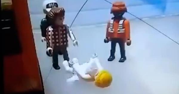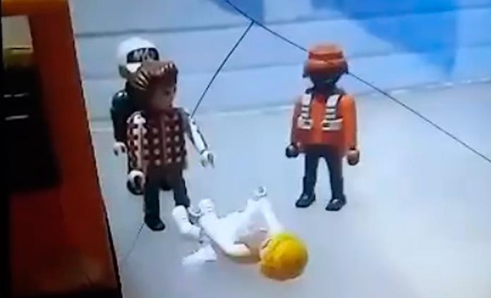 Y es que no se trata de cualquier animación, sino que con ayuda de muñecos recrearon la escena en la que pasajeros de una combi que circulaba sobre la carretera federal México-Texcoco golpean a un hombre que intentaba quitarles sus pertenencias.