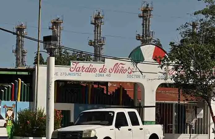 Desde octubre de 2025, padres de familia del jardín de niños Agustín Melgar y de la primaria Abías Domínguez Alejandro, ubicados en la colonia Lázaro Cárdenas del Río, a sólo cuatro metros de distancia de la refinería, han realizado marchas exigiendo la reubicación de estos centros educativos, debido a que los niños presentan dolores de cabeza, mareos, náuseas y hasta desmayos. A estos malestares se suman los fuertes ruidos (de las maquinarias, zumbidos y de los mechones), las vibraciones, el olor a combustible y el polvo de Coque, un derivado del petróleo que se adhiere a los pulmones.