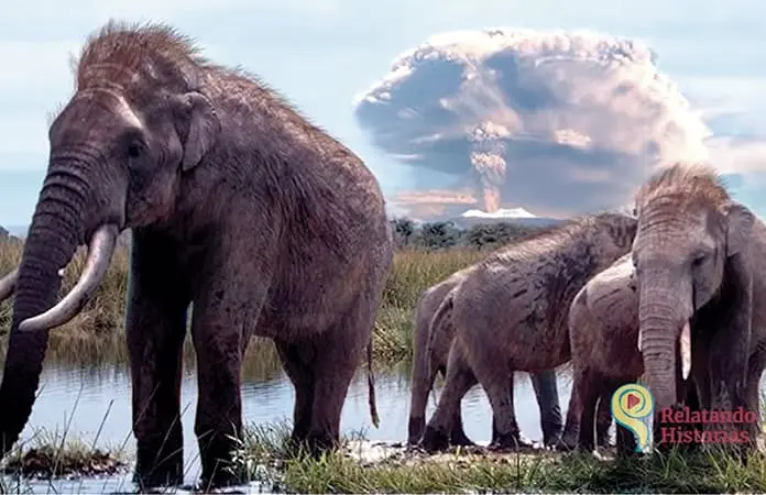 Mientras con la trompa vertía agua cristalina en su boca, la mamut líder observaba a su manada. Disfrutaba viéndolos beber y comer; unos se habían metido al lago y bebían con la boca sumergida, terminaron revolcándose felices en el lodo. A la matriarca le agradó ver tantos tipos de aves nadando entre los tulares y otras plantas acuáticas que bordeaban la orilla; la conducta de los pájaros que vigilan desde la altura, informa lo que ocurre alrededor, un vuelo repentino o un graznido, podría indicar algún depredador merodeando.