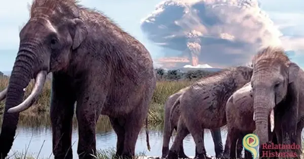 La joven matriarca permaneció despierta, solo dormitando a momentos. Fue entonces cuando escuchó unos agudos gemidos que venían de la montaña, parecía ser de un mamut muy joven, ella pensó en la cueva que habían visto. Aunque segura que no era nadie de su grupo, la matriarca emitió una fuerte barritada de alarma que despertó a su manada. Todos se agitaron inquietos y alertas por un rato, pero no se escuchó nada más y volvieron poco a poco a su descanso, los mamuts no temían a ningún depredador. Al día siguiente, la manada continúo pastando en las laderas del volcán, arrancaban manojos de hierba aun mojada por el rocío. Ya atardecía y el viento bajaba de la montaña, empezaba a descender, pero la joven matriarca decidió revisar la cueva de hielo, aun angustiada por el grito que habían escuchado. La valiente líder se acercó a la entrada de oscura roca basáltica, era amplia y ella avanzó adentrándose paso a paso.