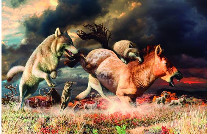 Los grandes lobos (Aenocyon dirus) eran depredadores muy eficientes en todo el territorio mexicano durante la era del hielo, cazando en equipo.