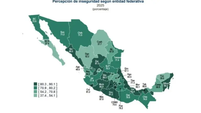 También, entre marzo y abril de 2025, el 75.6% de la población de 18 años y más consideró que vivir en su entidad federativa era inseguro debido a la delincuencia (la cifra resultó estadísticamente superior a la de 2024).