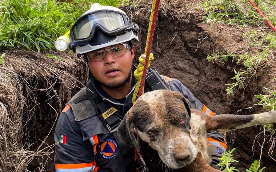 Explicó que al llegar se realizaron las maniobras pertinentes para iniciar con el rescate del perro el cual se encontraba en un pozo de aproximadamente 5 metros de profundidad, por lo que se requirió apoyo especializado de Protección Civil.