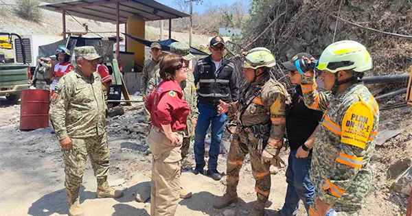 Continúan las tareas para localizar a los otros tres atrapados en una mina en El Rosario, Sinaloa