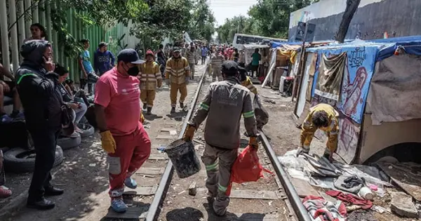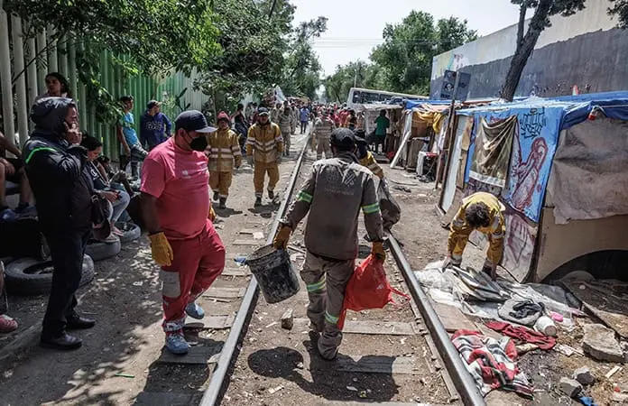 “Es un punto de conflictividad social, el campamento en las vías es un riesgo en materia de protección civil, un riesgo en materia de seguridad y además hay una demanda de vecinos de la colonia que llevan más de tres años conviviendo con este campamento”, dijo y agregó que ayer, en el primer día del operativo, se desmantelaron alrededor de 10 casas improvisadas de lonas y madera.