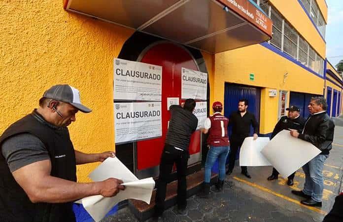 Personal de la alcaldía acudió a este lugar, ubicado en la colonia San Rafael, para colocar estos letreros de suspensión de actividades.