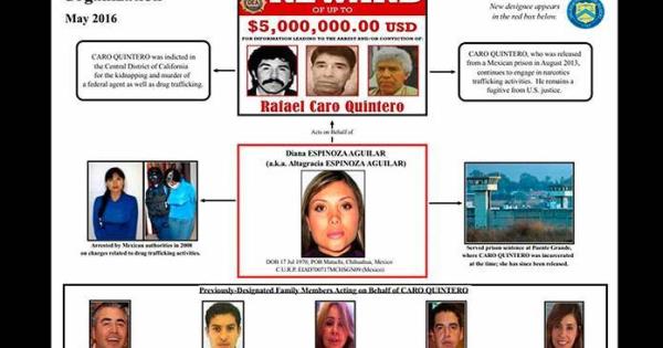 CIUDAD DE MÉXICO.- El Departamento del Tesoro de los Estados Unidos eliminó de su lista de lavadores de dinero a la primera esposa del capo Rafael Caro Quintero, María Elizabeth Elenes, sus hijos y empresas asentadas en los estados de Jalisco y Sinaloa.