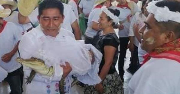El ritual se celebró este 30 de junio en el día de las fiestas patronales de Huamelula, dedicadas a San Pedro Apóstol; en ellas, el presidente municipal Víctor Hugo Sosa García y la lagarto hembra llamada Alicia Rubía, que representa a la etnia huave.