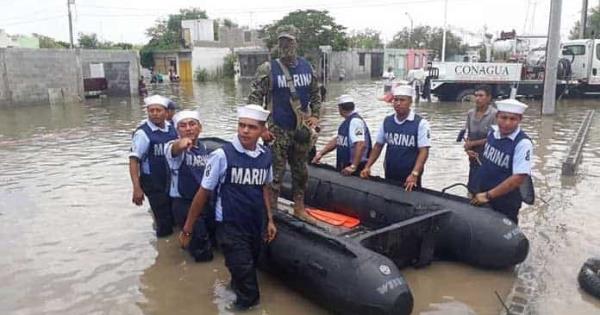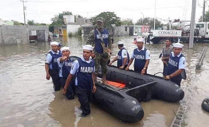Elementos de la Secretaría de Seguridad y Protección Ciudadana (SSPC) llevan a cabo acciones de apoyo y ayuda a los damnificados de las inundaciones, provocadas en diferentes zonas de Tamaulipas por las intensas lluvias registradas en las últimas horas.