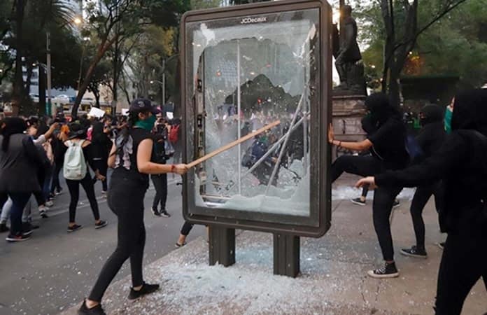 A la movilización se siguen sumando mujeres y se calcula que hasta el momento el grupo está integrado por mil 500 personas; a su paso algunas de ellas destrozan vitrinas sobre Peseo de la Reforma y parabuses, como es el caso de la estación Hamburgo del Metrobús.