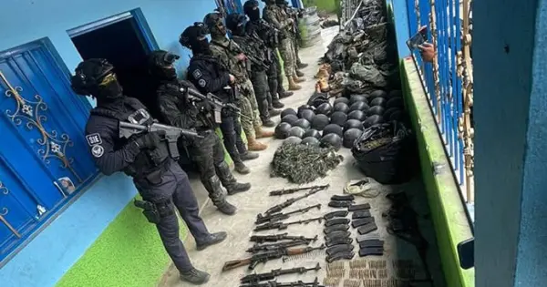 Los elementos incautaron dos armas cortas, dos armas artesanales, 18 armas blancas como cuchillos, navajas, un cargador y 17 cartuchos, 268 dosis con características similares a la metanfetamina; cinco envoltorios y dos bolsas con hierba seca, aparentemente marihuana. También cinco inmuebles, una estructura unipolar (antena), dos computadoras, nueve celulares, dos radios de comunicación, una camioneta con reporte de robo y ocho motocicletas.