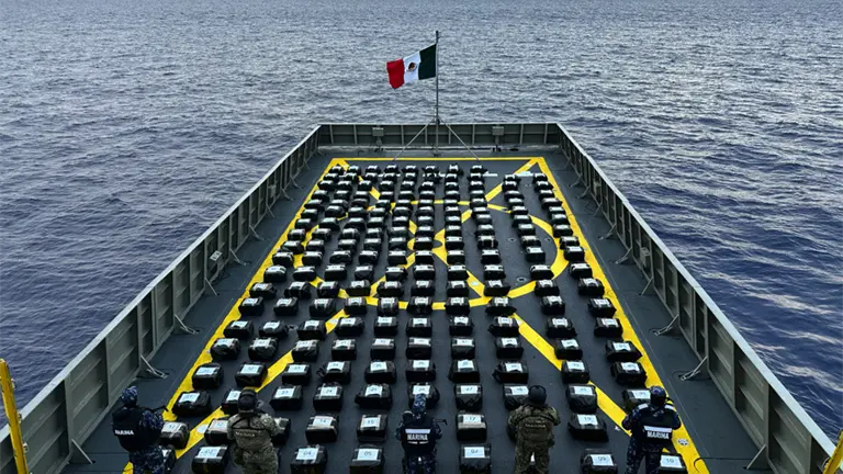 En un comunicado, la Semar precisó que "aún no se ha determinado el pesaje oficial de esta carga con las autoridades ministeriales, aunque representa uno de los aseguramientos de droga más importantes en lo va de 2026", en el que además hubo personas detenidas.
