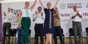 Acompañada de la gobernadora dIndira Vizcaíno (Morena), la Mandataria federal destacó que en los próximos dos años y medio se destinarán para Colima 12 mil millones de pesos.