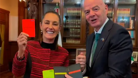 Infantino se dijo "muy feliz" por este encuentro con la titular del Ejecutivo federal: "Preparando este mundial que va ser una fiesta, que va a ser un éxito para México porque somos todos mexicanos".