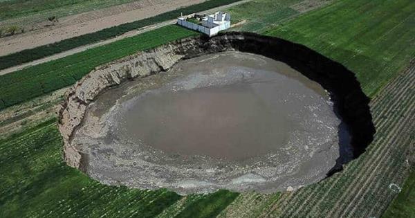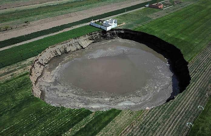 El socavón inició con un diámetro de 5 metros y el jueves ya tenía más de 80, por 29 de profundidad, y sigue creciendo.