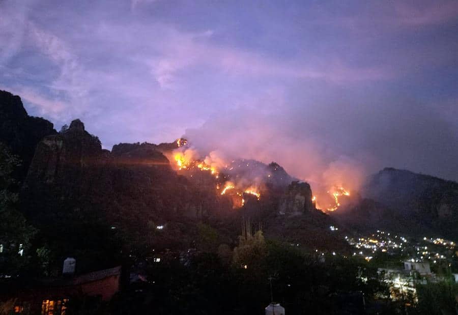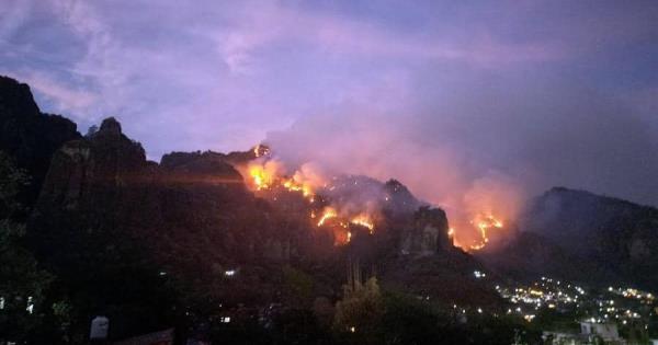 Suben a 95 hectáreas las afectadas por incendio en el cerro de Tepoztlán, Morelos (Fotos)