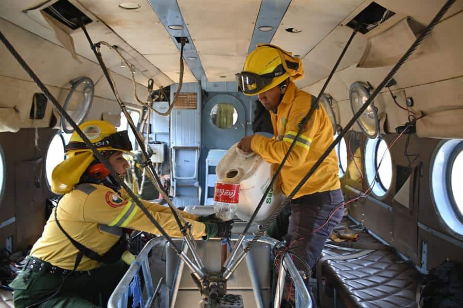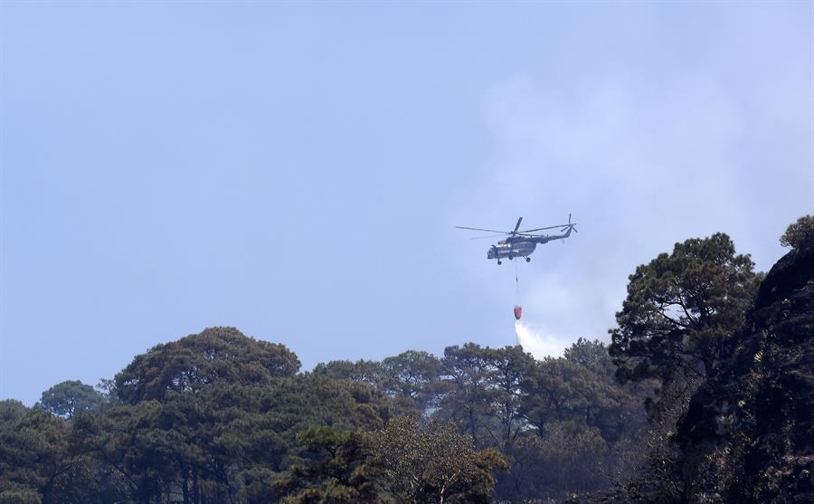 Por aire, de acuerdo con el reporte oficial, dos helicópteros MI-17 de la Sedena y la Guardia Nacional, equipados con helibaldes, efectuaron 55 descargas, equivalentes a 110 mil litros de agua en los diferentes frentes del incendio. Ademas, se tuvo el apoyo terrestre de 52 unidades como carros motobomba, pipas, ambulancias y vehículos de emergencia para el transporte de personal, entre otros.