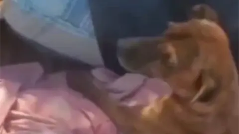 En otra grabación se aprecia a "Tigre" ya rescatado, acostado sobre una cobija y con una venda alrededor de la cadera. Quien lo graba le mueve las patas quizá para ver el daño que tienen.