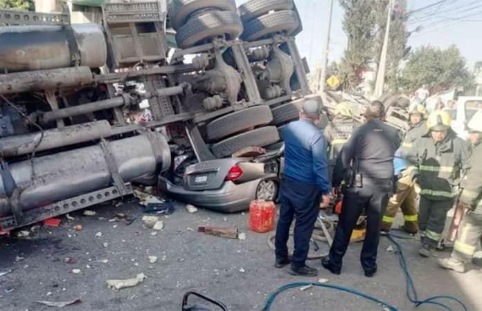Tráiler cae de puente y aplasta 3 autos en Cuautitlán-Tlalnepantla