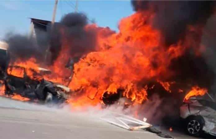 Además de la propia cabeza del camión, hay al menos siete coches calcinados y peritos de la Fiscalía se encuentran haciendo el levantamiento de los cuerpos, fotografías forenses y todo tipo de investigaciones.