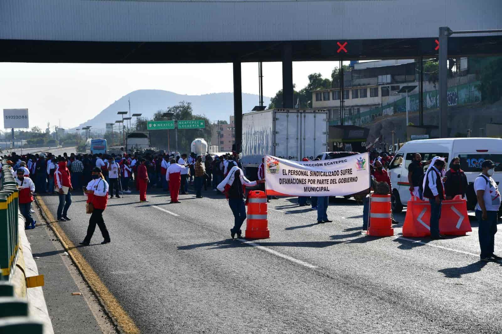 Después de las 19:00 horas los empleados sindicalizados del gobierno local se retiraron porque no se presentaron al lugar funcionarios del ayuntamiento ecatepense. Los inconformes se apostaron en la caseta de cobro e impidieron el paso de vehículos en los dos sentidos desde antes de las 9:00 de la mañana, para presionar a las autoridades locales de prestaciones laborales que se estipulan en el convenio de trabajo.