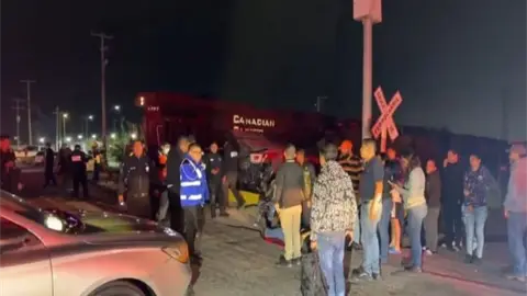 El accidente ocurrió alrededor de las 3:30 de la mañana, cuando la unidad de transporte de personal en la que viajaban empleados, fue embestida por el tren.