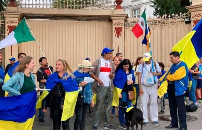 Ucranianos se manifiestan frente a la embajada rusa en México