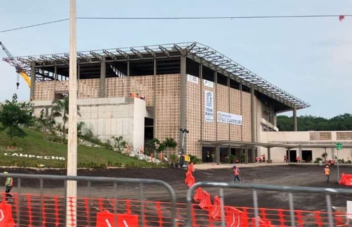Es la estación SF Campeche, una de las cinco estaciones del proyecto estrella del Mandatario para conectar el sureste mexicano, poco más de seis kilómetros de la capital campechana sobre el Periférico Pablo Garcia.