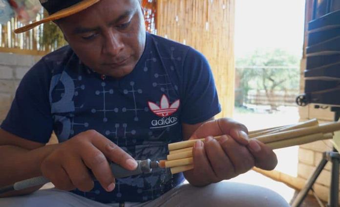 En Santa Cruz Papalutla, municipio ubicado a 35 kilómetros de la capital oaxaqueña, se instaló un pequeño taller que emplea a ocho artesanos, que tradicionalmente se dedicaban a elaborar piezas hechas a base de carrizo -una planta gramínea de tallo largo- como canastas, flautas, marcos o jaulas.
