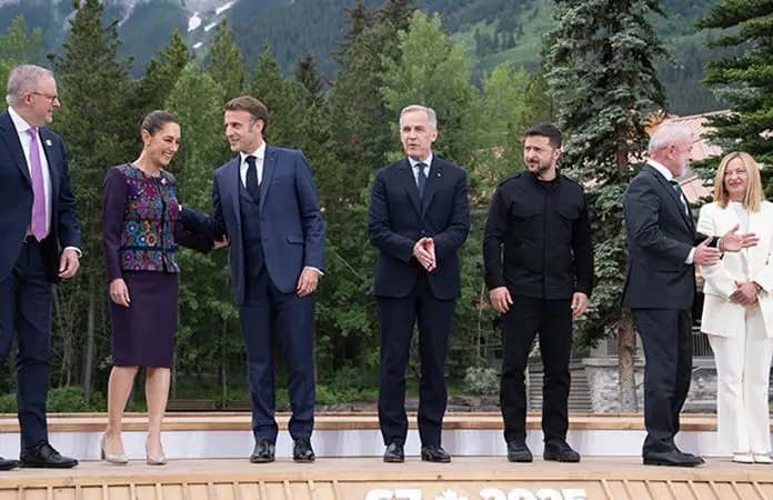 KANANASKIS, Canadá.- Después de que Donald Trump, presidente de Estados Unidos, se retiró de la Cumbre del G7 para atender la emergencia bélica en Medio Oriente, la presidenta mexicana, Claudia Sheinbaum Pardo, conversó por teléfono con el mandatario de EU durante 15 minutos para negociar en qué trabajarán juntos para llegar pronto a un “acuerdo global” en diversos temas que preocupan a ambas naciones.