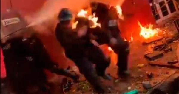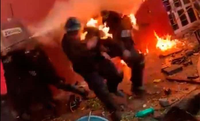Durante el desalojo que se registró este martes en un edificio de la alcaldía Álvaro Obregón, miembros de las familias afectadas agredieron con fuego a elementos de la Secretaría de Seguridad Ciudadana (SSC) que acudieron al lugar.