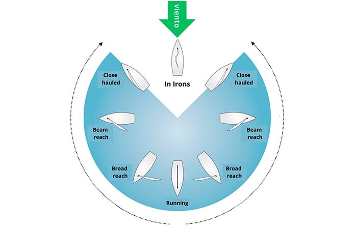 Las velas de un velero funcionan como las alas de un avion, se impulsan por el flujo del viento que pasa por ellas; Asi, la posicion, el angulo de las velas, se ajusta según la direccion del viento y el rumbo deseado del navio.
