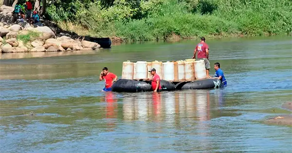 La mañana de este lunes, elementos de la XXII Zona Naval con sede en Puerto Madero, Chiapas, interceptaron en el río Suchiate una balsa con combustible que venía de Guatemala.