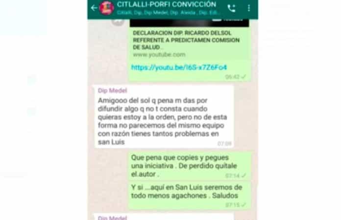 En una captura de pantalla de una conversación en un grupo de WhatsApp de diputados de Morena y que circula en redes sociales, se ventila la discusión entre ambos legisladores morenistas.